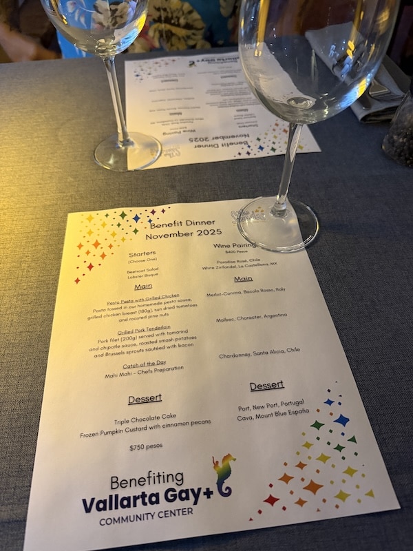 El Swedes Bar and Bistro atrajo a más de 60 comensales en dos cenas el jueves 13 de noviembre de 2025, cuando el restaurante organizó una velada benéfica para el Centro Comunitario Gay+ de Vallarta.