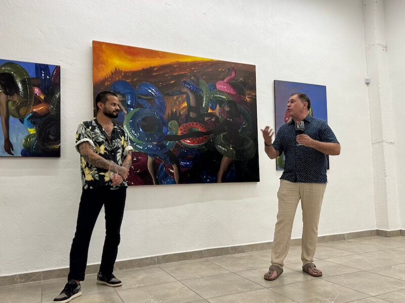 Mark Uhalley, director de la galería , dijo que el objetivo es crear una plataforma para artistas cuya obra refleje la evolución del arte contemporáneo en México, al tiempo que se atrae a la comunidad local a la conversación con coleccionistas y viajeros visitantes. Los invitados se movían con facilidad entre las dos exposiciones, reuniéndose en pequeños círculos para hablar con los artistas y comparar sus primeras impresiones sobre la obra.