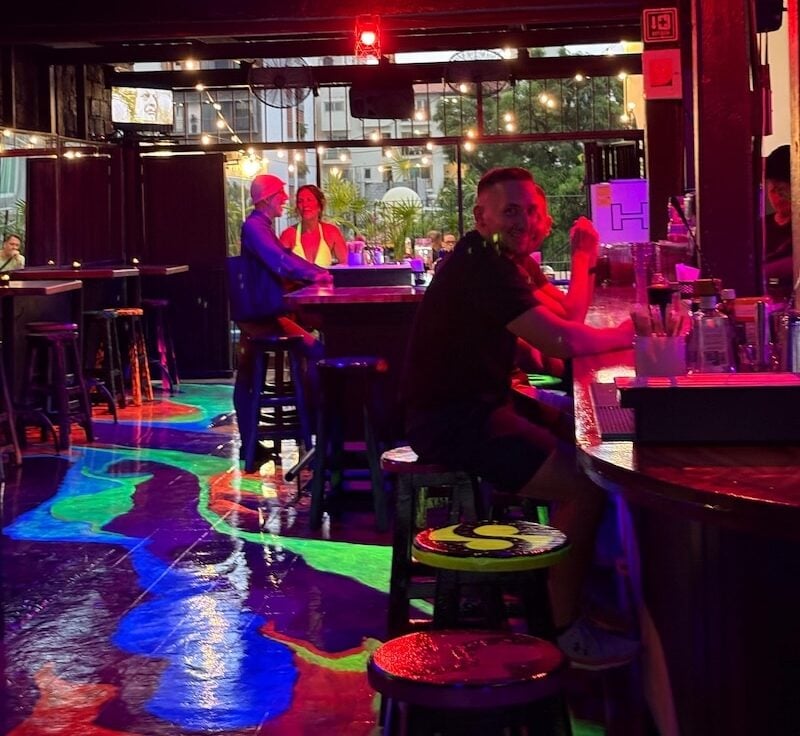 El local ha experimentado una importante transformación, yendo mucho más allá de su vida pasada como Los Amigos. Sanctuary PV luce ahora una estética moderna y atrevida, con interiores que presentan llamativos colores de neón en el suelo y el mobiliario.